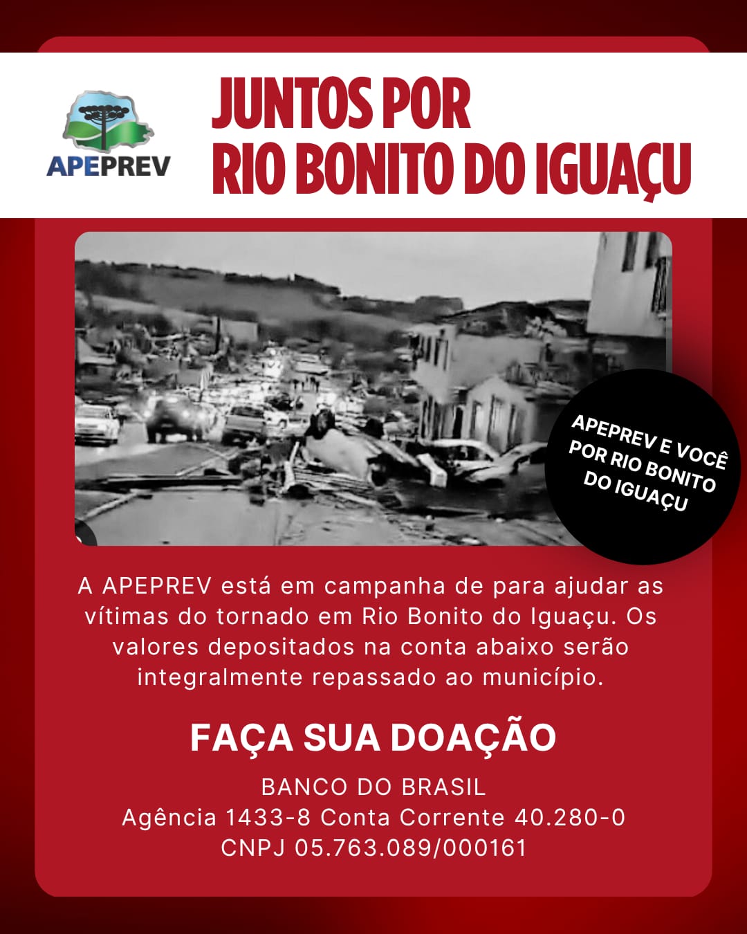 A APEPREV SE SOLIDARIZA COM A SITUAÇÃO DO MUNICÍPIO E INICIOU UMA CAMPANHA.