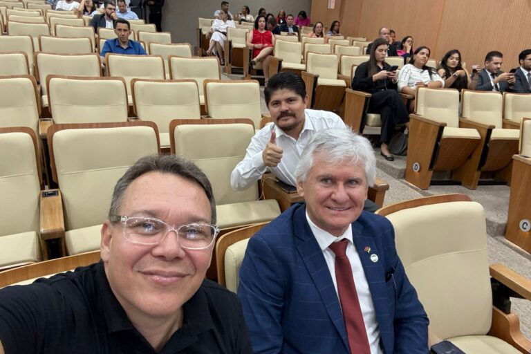 O Presidente da ADIMP-MS, Michel Vaz Morrisson, Adilson Carlos e Alderi Zanatta da ANEPREM…